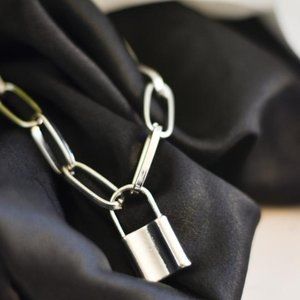 Lock Paperchain necklace silver tone chunky links