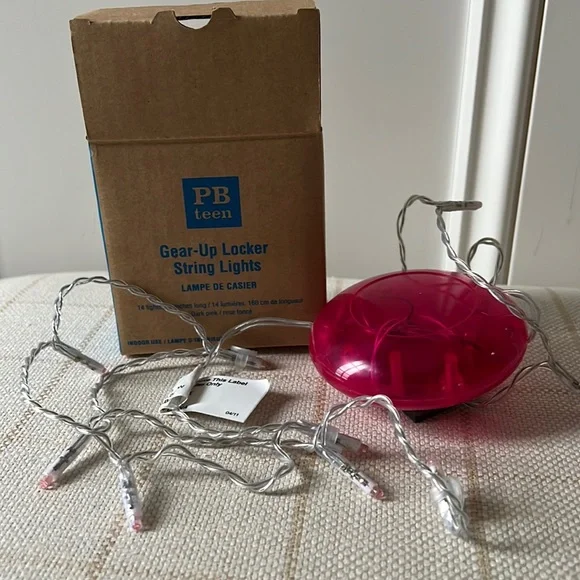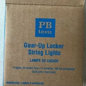 Pink string lights for a school locker. Magnetic Attachment. Never been used. Comes with box and instructions. Lights are pink