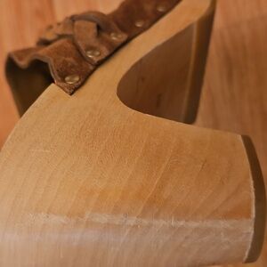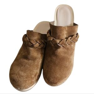 Loeffer Randall Cacao Suede Merrill Wooden Heeled Boho Braid Clogs Size 8.5