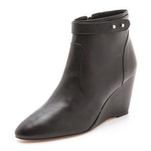 Loeffler Randall Black Leather Ankle Wedge Boots