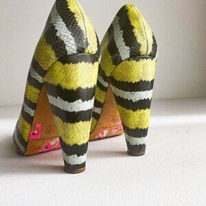 Loeffler Randall Snakeskin Grey Yellow White Chunky Heels