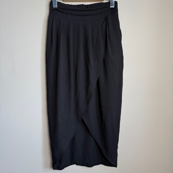 Loft 82 Women's Split Wrap Front Midi Skirt Black Whimsigoth Witchy Festival