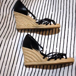 Loft Ann Taylor T back ankle sling platform sandals