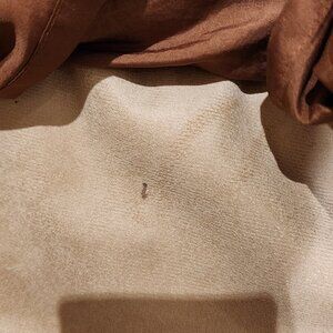 Lined skirt with pockets, hits above knee. Side zipper and clasp. Small mark on inside of skirt shown. 15"x17.5"