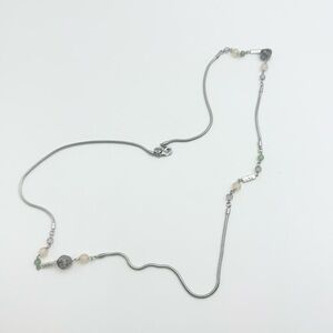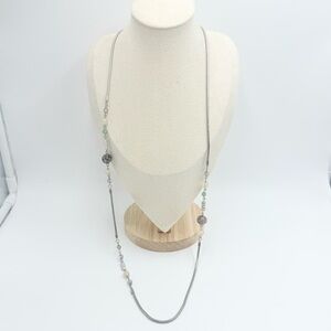 Loft Gem Stone Beaded Silver Tone Long Necklace