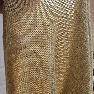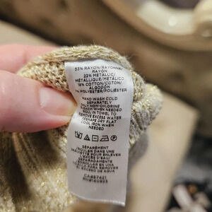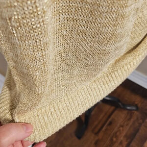 Loft Golden Metallic Crew Sweater Knit Beige Yellow Rayon size XL