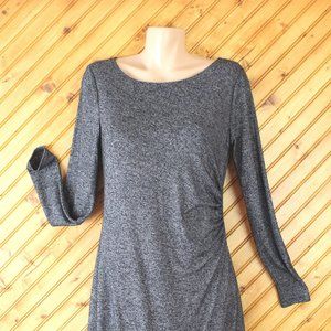 Loft Knit Asymmetrical Cinch Dress Dark Grey Gray Small Long Sleeve Midi D73