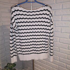 Loft Ladies Size Medium Long Sleeve Black & White Loose Fit Sweater