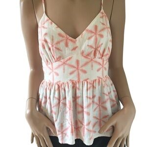 Loft Rayon Cami Shirred Smocked Linen Blend Star Tie Dye Peplum Tank Top Blouse