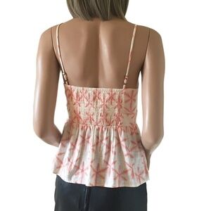 Loft Rayon Cami Shirred Smocked Linen Blend Star Tie Dye Peplum Tank Top Blouse