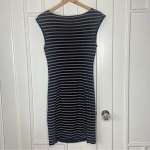 Loft Size Med Black White Stripe Stretch Knit Sheath Dress lined comfortable