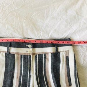 Striped summer ankle pant from Loft. Light gauzy feel - linen/cotton mix, perfect for hot weather. Size 0 but fit large - see measurement - so I've listed as XS, and they can likely fit an S as well.