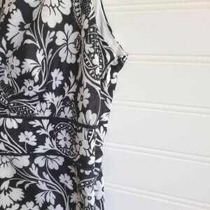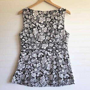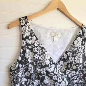 Loft Top Womens Size 8 Black and White Floral Sleeveless Crossover Front