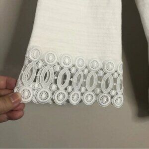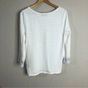 Loft white round neck pullover top in size medium. Long sleeves have lace cuffs. Soft. Neutral.