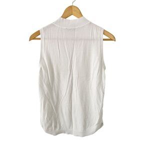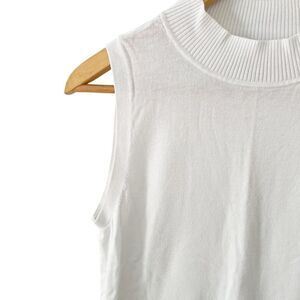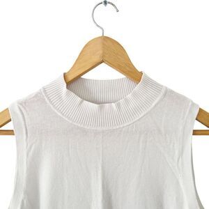 Loft, white sleeveless blouse, mock neck top, knit fabric, minimalist style, chic and simple, lightweight knit, polished basic, business casual, layering essential, soft and stretchy, elevated everyday wear, wardrobe staple, classic neutral, refined silhouette, versatile white top, summer office style, sleeveless mock neck, timeless and clean, modern minimalist, effortless elegance, for someone who loves sleek lines, neutral tones, and versatile pieces that go from work to weekend with ease.