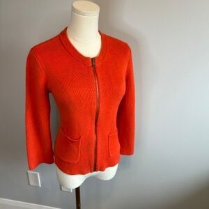 Loft Women's Cropped 3/4 Sleeve Cotton Knit Orange Zippered Cardigan, SZ M