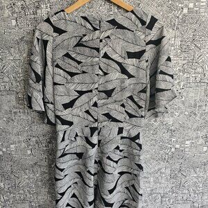 Loft Women’s Fern Wrap Romper Black White Botanical Print Pockets
