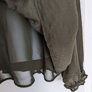 Loft khaki ruffle neck ruffle sleeves boho blouse XSP