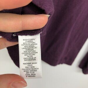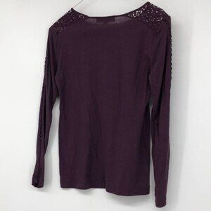 Loft purple long sleeve illusion lace neckline cutout crochet sleeve t-shirt XS