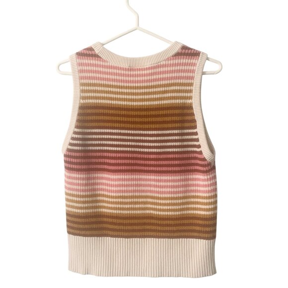 Loft Medium vintage style sleeveless sweater vest made out of 100% cotton soft knit, Cream with beige, tan, , brown, pink stripes. Casual wear. brand new condition.