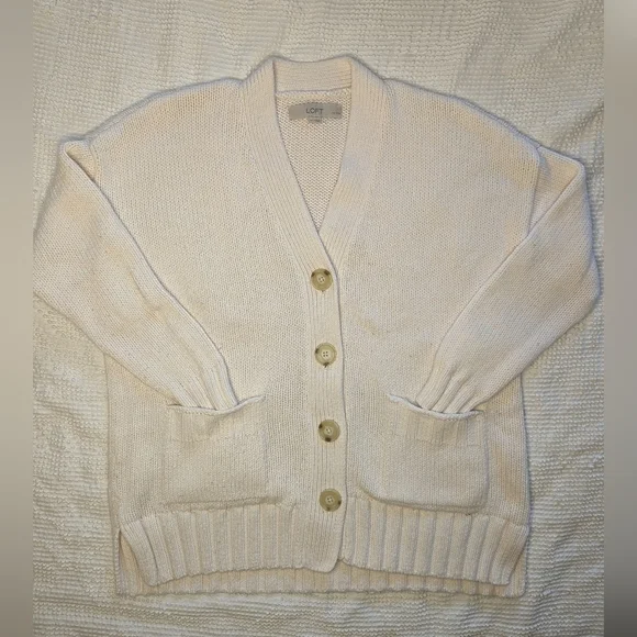 Excellent preowned conditions. Button up v neck. Two front pockets.