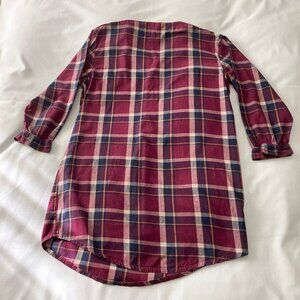Logan Hill | 100% Cotton Long Sleeve Burgundy/Navy Plaid Sleepshirt | Size M