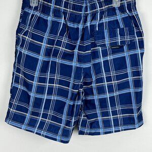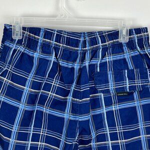 Logan Hill Swimwear Shorts Size S Blue Plaid Elastic Waist 30-32in Inseam 8in