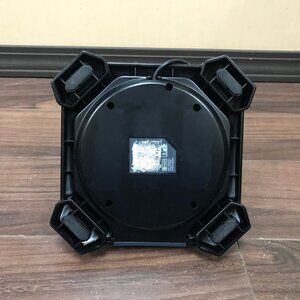 The label on the bottom has been worn off. There was some tape on the bottom that was removed, some light marks remain from the removed tape. The rubber around the stick has some cracking. See pics.