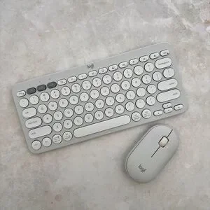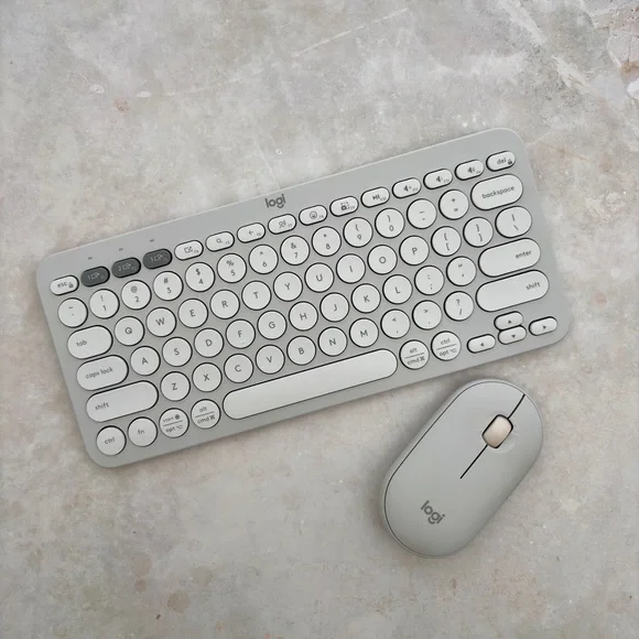 Compact Logitech wireless keyboard and mouse. Ideal for modern setups.