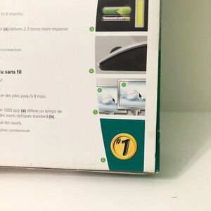 This mouse is sealed in box and never used. There are stains on the packaging and some wear from storage. Please see all photos for exact item.