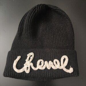 Keywords: CC inspired beanie, pearl logo beanie, black knit winter hat, luxury inspired beanie, chic winter accessories, cc style hat, pearl detail beanie, cozy knit hat, winter fashion, women’s beanie, canadian seller