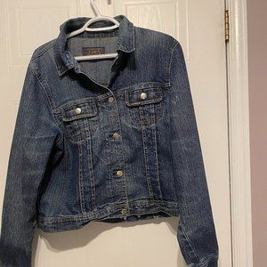 Lois Distressed Women's Cropped Denim Jean Jacket Size Large