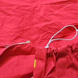 Excellent quality Lolë red hooded jacket with a zip front and drawstring along with details. Perfect for casual outings.