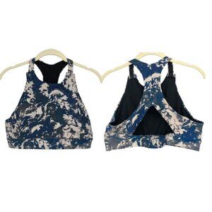 Lolë blue white swirl high impact sports bra women’s LG *shortened straps*