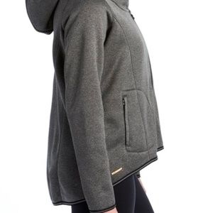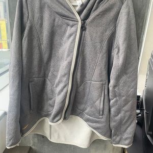 Lolë light grey hooded cardi-jackett with an asymmetrical front zipper size L