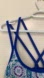 It has a built-in shelf bra and cross straps at the back. Made of polyester and spandex, this has lots of stretch. It is like a thick T-shirt material. Very attractive piece.