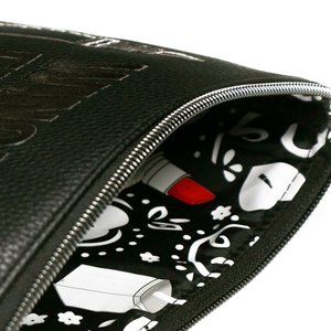 This clutch is for makeup lovers and fashionistas alike and festively printed with gold metallic foil and gold metal zipper.