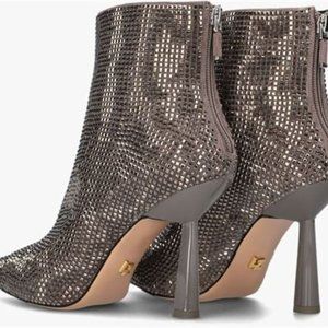 NWT Leather ankle boot sparkling with all-over stone embellishments and set on a lacquered heel.