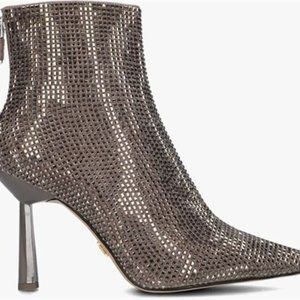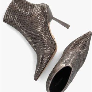 Lola Cruz Austro Embellished Leather Ankle Boots - Gunmetal - NWT