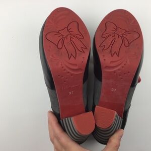 In excellent preowned condition, small faded dark blemish on suede inside left shoe (photo), small scuff on black leather on outside of left shoe (photo)