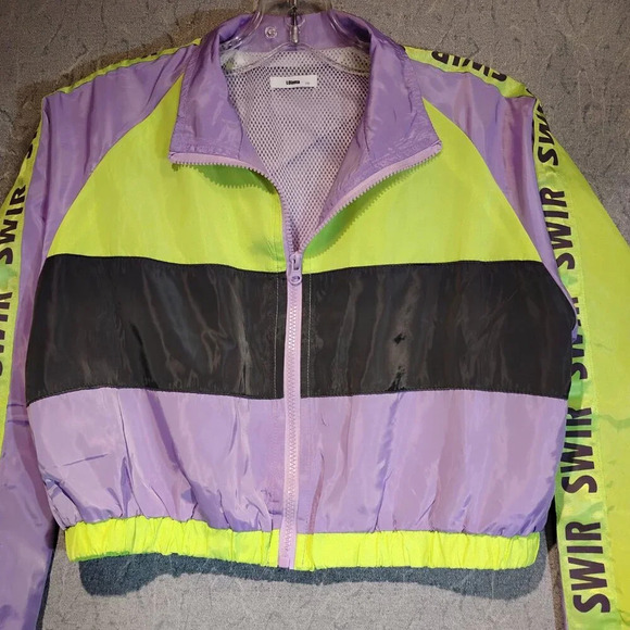 Lolanta Swir 2pc Fluorescent Running Suit & Fashion Halloween Cosplay Costume. This 2 piece pre-owned suit is supposed to be a Fashion Halloween Cosplay Costume, but I can't help but think what a wonderful running suit this is, especially with all the neon fluorescent trim and sleeves. Lightweight, with Long Sleeve Zippered Jacket, featuring Elastic Cuffs, measuring approximately 20" wide from armpit to armpit and 17" long. The pants have 2 side pockets, elastic waist and cuffs, measuring approximately 13-1/2" wide at the waist, 24" inseam, 24" outer seam, with a 13" rise. There is a slight defect as noted in the last two photos.