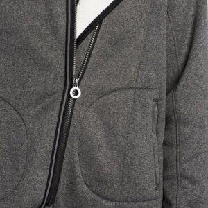 Lole Asymmetrical Zip Front Gray Fleece Light Hooded Jacket