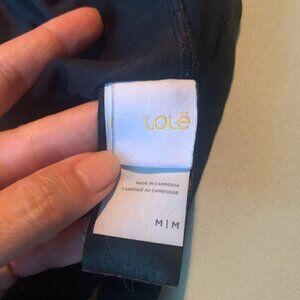 Great quality sports bra by Lole. Black with cross back straps. Used with a tiny bit of pilling on straps but otherwise great condition. Material is 79% polyester, 21% Spandex. Size Medium.