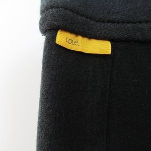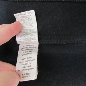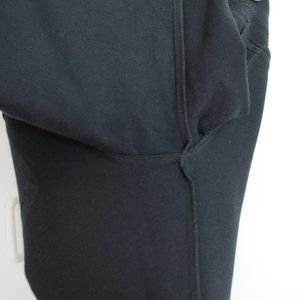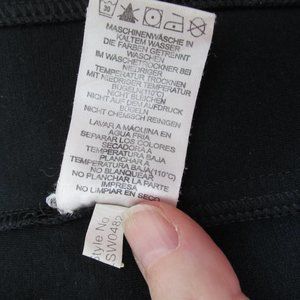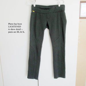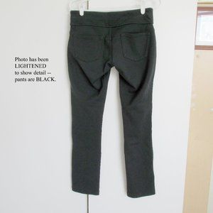 These pants are so BLACK it is hard to see details -- so some photos are lightened. Tiny zipper pocket on front, two open pockets on back.