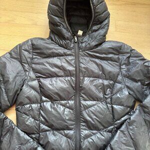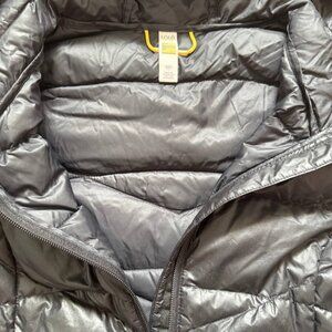 Lole Down Long Quilted Puffer Hooded Coat Jacket Womans Lightweight Gray Size Sm