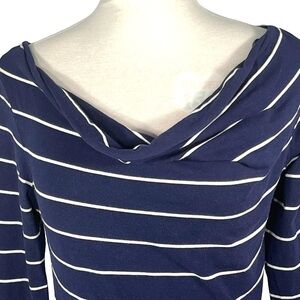 Lole Megan cowl neck top navy blue and white chalk striped organic cotton Size S