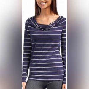 Lole Megan women’s cowl neck top navy blue and white chalk striped organic cotton Size S