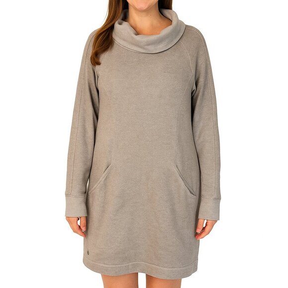 Lole Sweater Dress Small Beige Cowl Neck Long Sleeve Knit Soft Minimal Cozy Fit