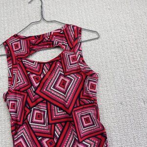 Lole Tank Top Tennis Knit V neck Shirt Women’s Small Psychedelic Boho Red AOP