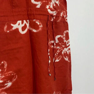 Lole linen cotton women red-orange batik floral tie dye midi hippie casual dress